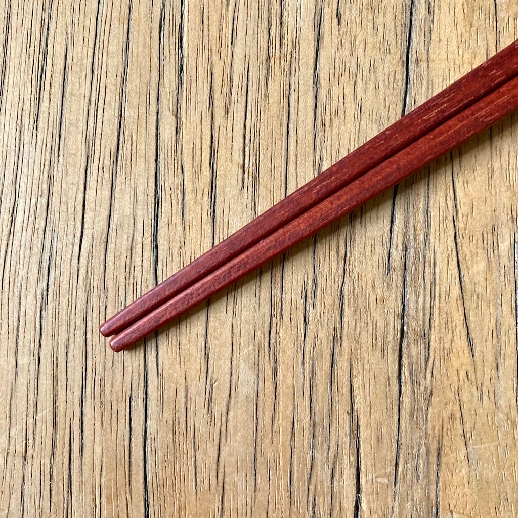 「木」そのものの、ビビッドな赤色。ほかの箸と同じく、着色していない自然なままの色は、使いこむことで、より深い色合いへとゆっくりと変化が楽しめます。サティーネは、固く、耐久性にも優れています。なめらかな手触りと、ほどよい重みがベストバランス。