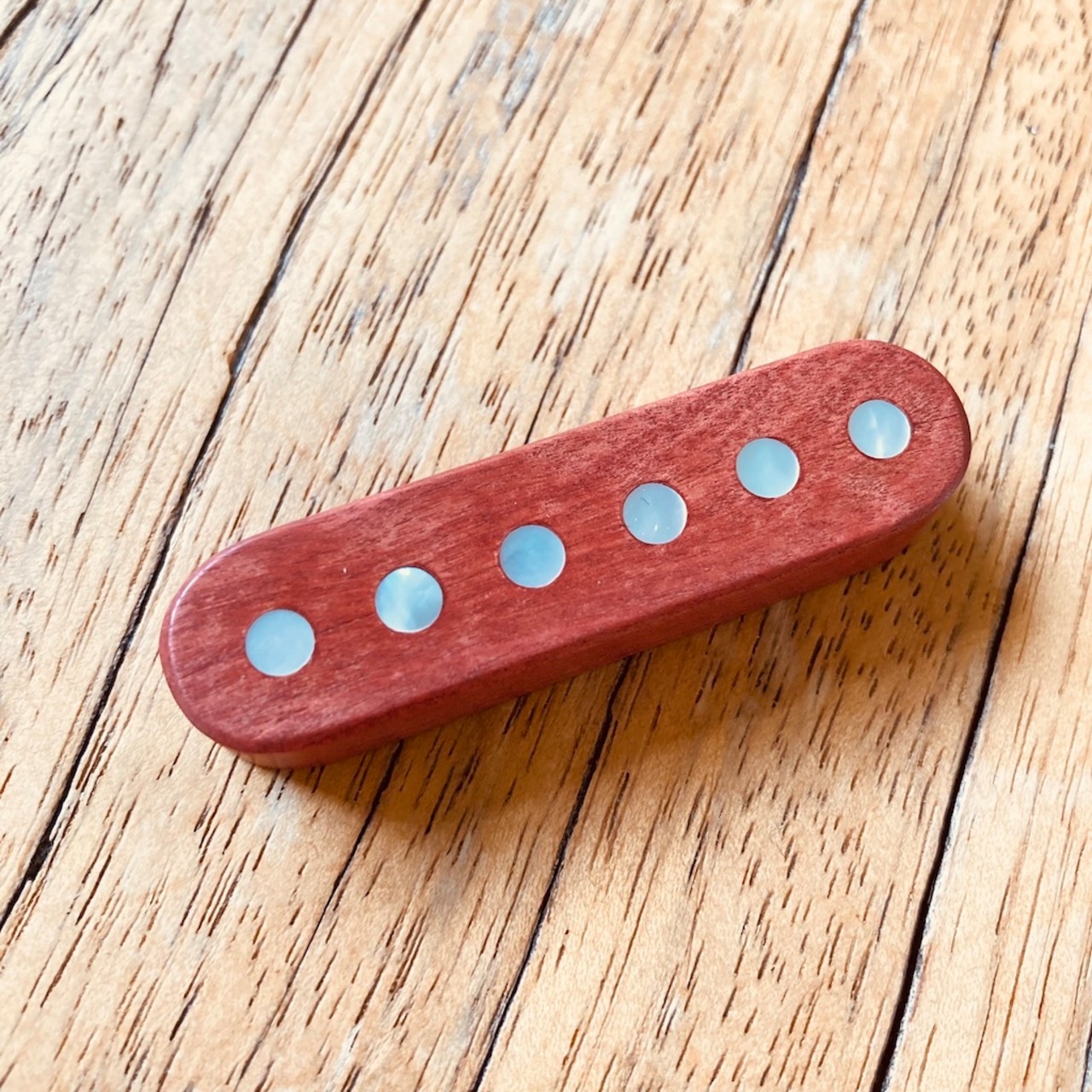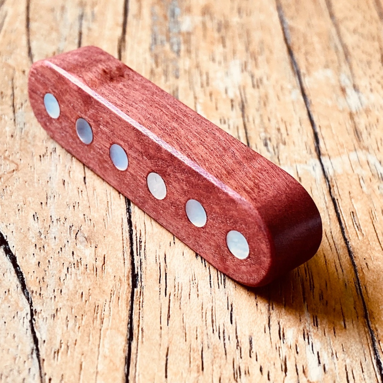 ドットには、ギター製作ではインレイや装飾にも使用している、天然のシェル(貝)が入っています。