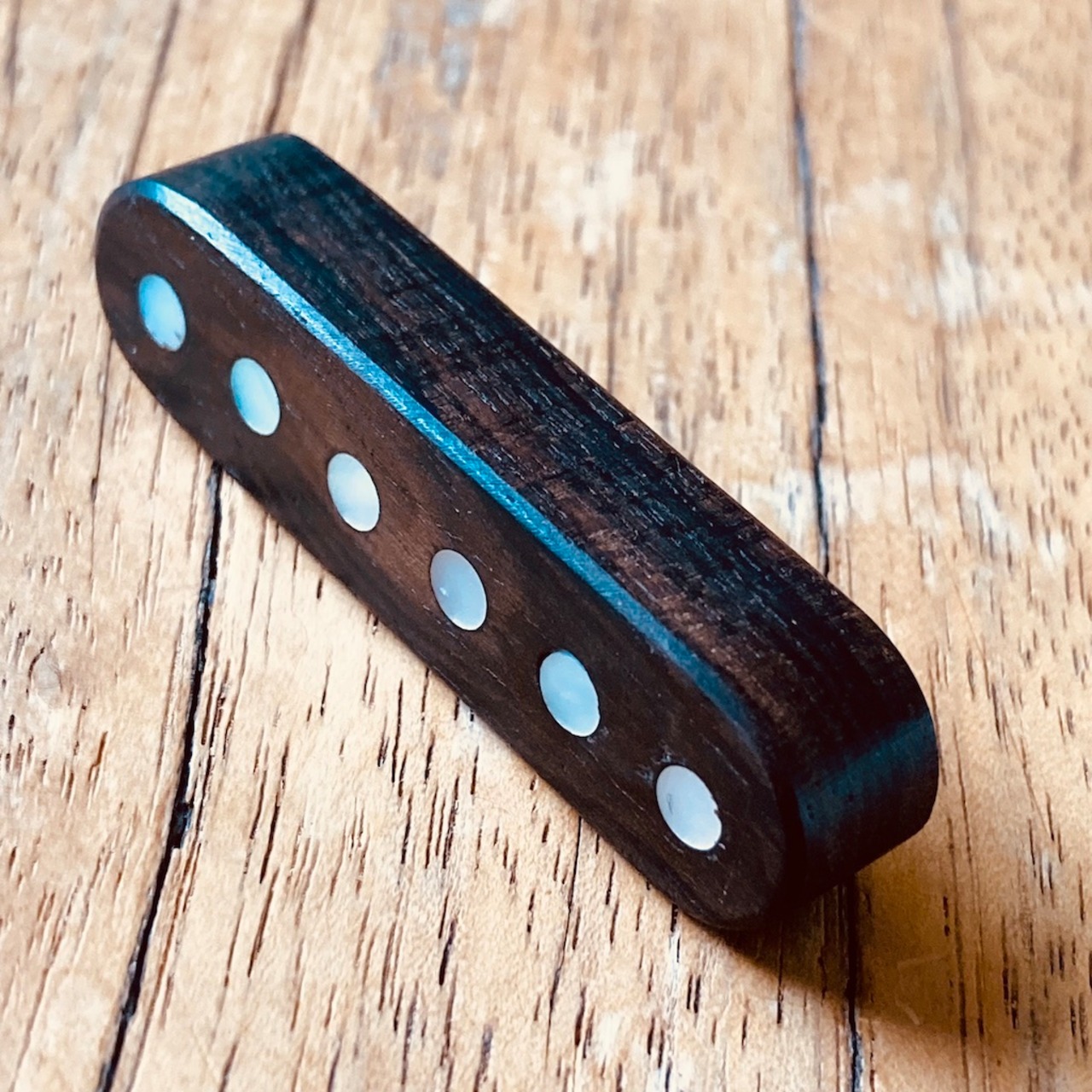 ドットには、ギター製作ではインレイや装飾にも使用している、天然のシェル(貝)が入っています。